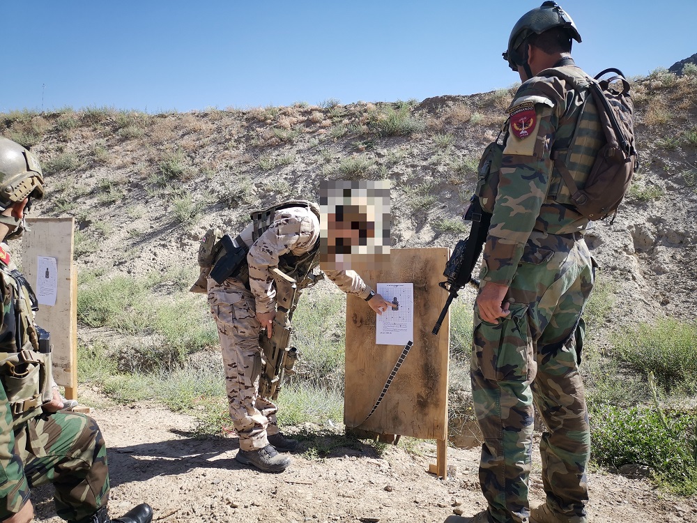 Ejercicio de tiro de las fuerzas afganas supervisando por militares de operaciones especiales españoles